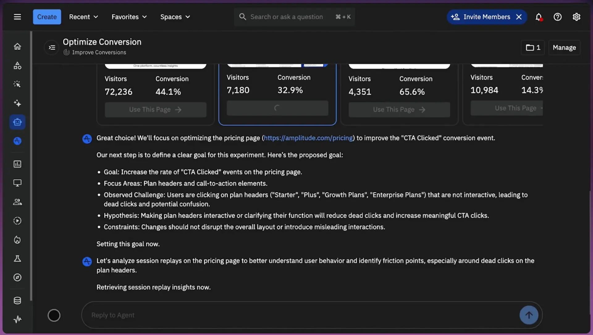 - 세션 리플레이 에이전트: 사용자가 어디서 헤매는지 자동으로 감지하고, 팀이 반복되는 문제를 빠르게 검증하고 고칠 수 있도록 구체적인 해결책을 제안합니다.